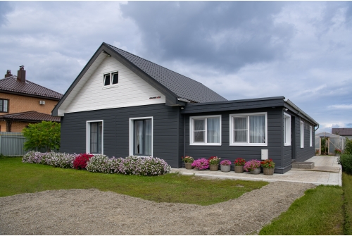 - В отличие от облицовки фасада деревом, металлический сайдинг «ЭкоБрус GL» прост в монтаже и не требует дополнительного послемонтажного ухода.