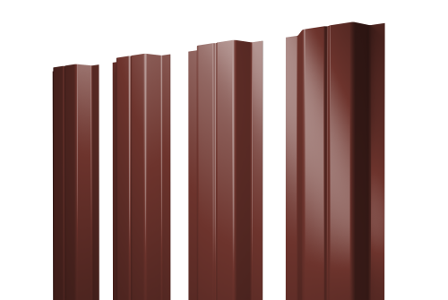 Описание товара: "Штакетник П-образный А с прямым резом 0,5 Satin RAL 3009 оксидно-красный"