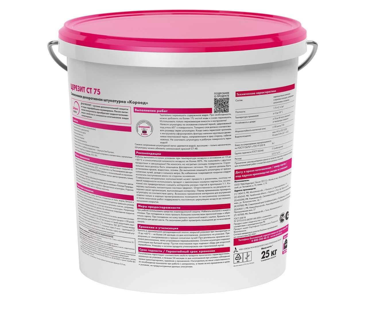 Описание товара: "Штукатурка Ceresit силиконовая СТ 75 2,0 мм "короед", база (25 кг)"