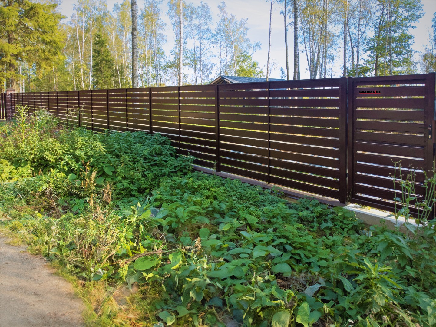 Ламель лицевая 50 забора жалюзи Texas 0.5 Satin с пленкой RAL 8017 шоколад