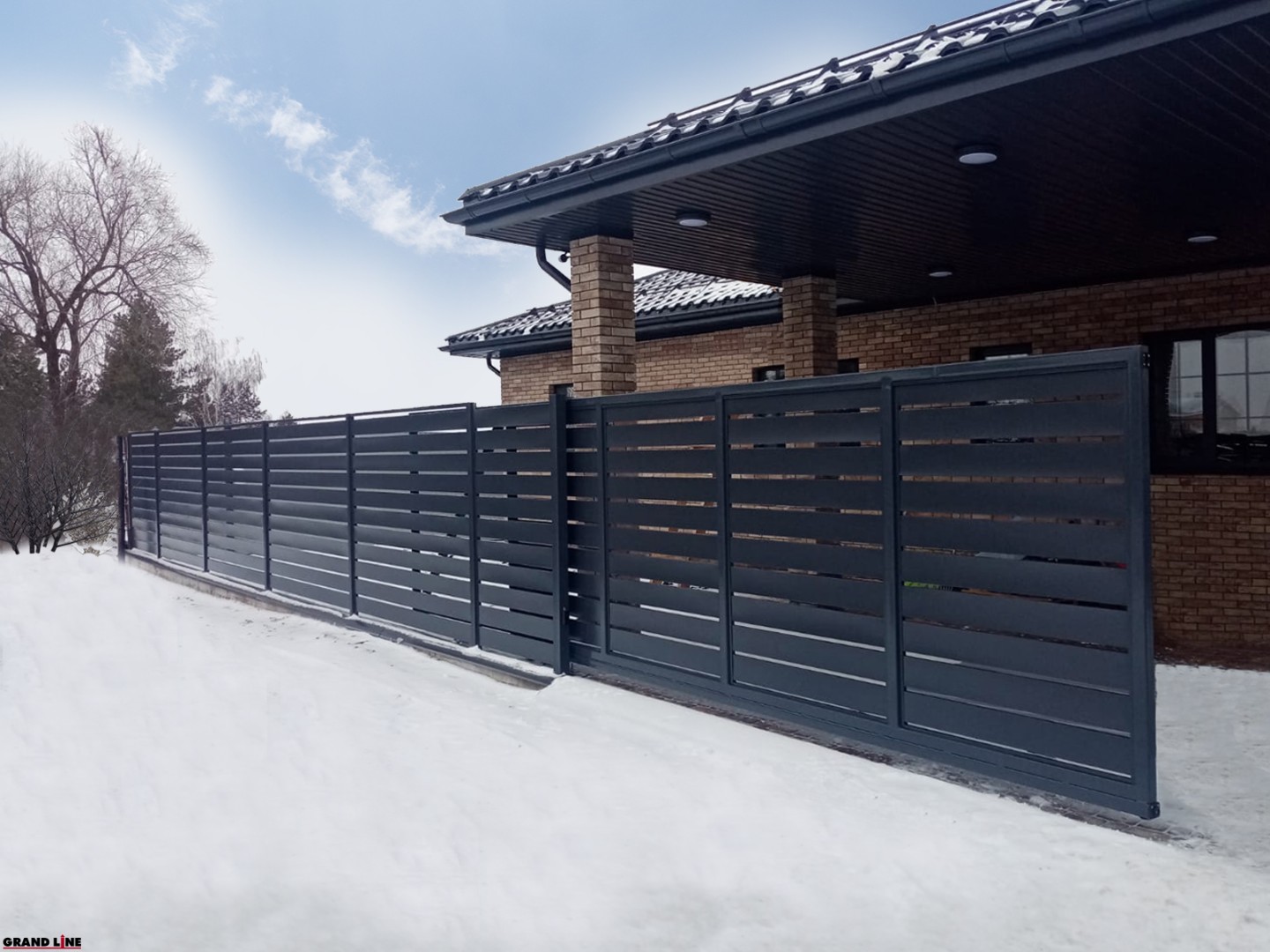 Ламель обратная 50 забора жалюзи Texas 0.5 Satin с пленкой RAL 7024 мокрый асфальт