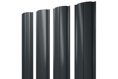 Штакетник Полукруглый Slim с прямым резом 0,5 Rooftop Бархат RAL 7016 антрацитово-серый