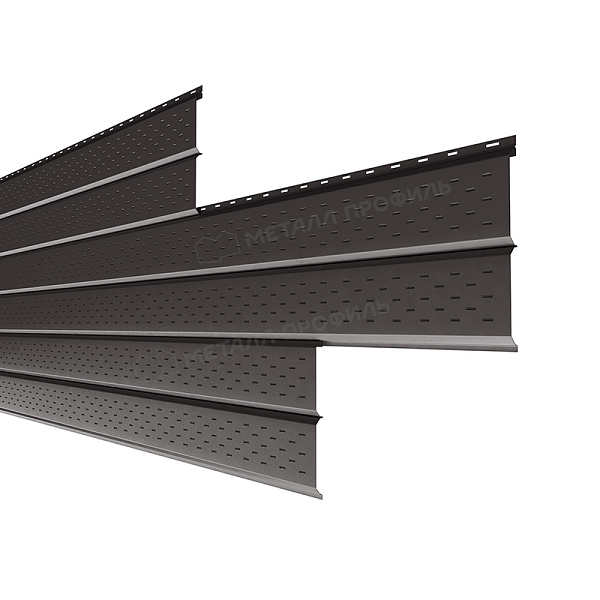 Софит – это панели сайдинга Lбрус, на поверхности которых нанесена перфорация. Используется для оформления кровельных свесов. Софит добавляет законченный и аккуратный вид зданию. Отверстия в панелях поддерживают доступ воздуха в подкровельное пространство и предотвращают появление плесени, конденсата, грибка.Покрытие Полиэстер: