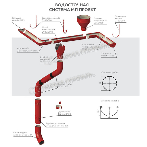 - Сталь в основе не позволяет Воронка водосборная МЕТАЛЛ ПРОФИЛЬ ПРОЕКТ D350х150 Ral 7004 корродировать.